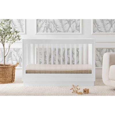 The Harlow 3-in-1 Convertible Crib takes chic nursery design to the next level with acrylic slats offering the best views of your little one so you don’t miss a thing. Modern and functional, an included toddler bed conversion kit allows you to seamlessly convert from crib to toddler bed to daybed as your babe grows. The solid base and frame are made from sustainable pine wood and GREENGUARD Gold certified for indoor air quality.