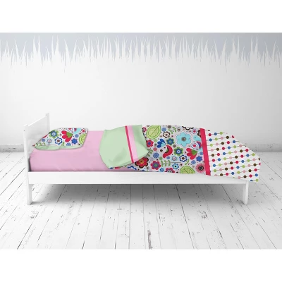 - This Bacati 3-piece Toddler Sheet Set Includes Toddler Bed Fitted Sheet (52 x 28 x 6 inches), Toddler Bed Flat Sheet(52 x 42 inches) which is fitted at the bottom to make the bed easily and Standard Pillow Case (20 x 25 inches) with rench ties on the back in fun, colorful and signature prints in 100 percent cotton 200 Thread Count percale fabrics. Designed in United States by Experienced Designers. Many coordinating items available to purchase separately in this Bacati Bedding Collection.