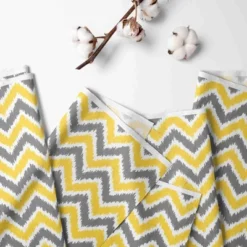 - This Bacati 4-piece Crib Set Includes Reversible Comforter/Playmat (33 x 43 inches), Crib fitted sheet (52 x 28 x 6 inches), Crib Skirt/Dust ruffle (13 inch drop) and Diaper Stacker (holds more than 30 newborn diapers) in fun, colorful and signature prints in 100 percent cotton 200 Thread Count percale fabrics. Designed in United States by Experienced Designers. Many coordinating items available to purchase separately in this Bacati Elephants Mint/Yellow/Gray Bedding Collection.