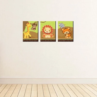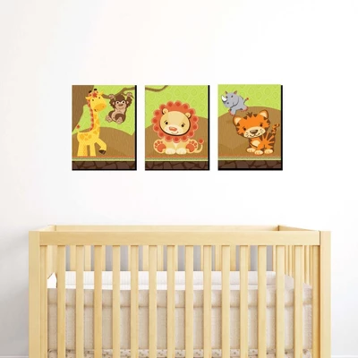 Funfari- Fun Safari Jungle Wall Art Set INCLUDES 3 ready-to-hang zoo animal themed panels and non-marking wall mounts for easy hanging. Funfari- Fun Safari Jungle artwork is perfect for a nursery, kids room or playroom. Funfari- Fun Safari Jungle Wall Art & Kids Room Decor SIZE each 10 inches high x 7.5 inches wide x .5 inches thick. Safari jungle lightweight art prints will arrive ready to use – no frame needed. The black edge gives each print a modern, finished look. EASY TO HANG: Simply attach a non-marking wall mount (included) to each corner of a Funfari- Fun Safari Jungle art panel and press to hang in desired location. Wall mounts are repositionable, so you can redesign your artwork display at any time. PREMIUM HOME DECOR: 3-piece Funfari- Fun Safari Jungle Wall Art Set is professionally printed on thick material with a black edge. You will not need to frame this set of jungle animal room decor. Each standout print is ready to hang and will add a contemporary touch to any room. MADE IN THE USA: Funfari- Fun Safari Jungle Nursery Wall Art & Kids Room Decor is designed and manufactured at our Wisconsin facility using materials that are Made in the USA.