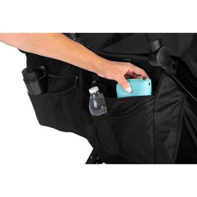 - CONVENIENT FEATURES: XL storage basket, 6 pockets, independent infinite reclining seats and ventilated UV 50+ canopies