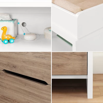 - ACCESSIBLE STORAGE: The two drawers mounted on metal slides and the wide open space are perfect for storing all the stuff baby needs, while keeping it close at hand. Diapers, powders, creams, and blankets will always be easy to reach.