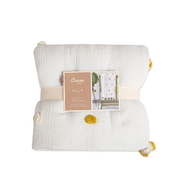 This soft and cuddly baby quilt is the perfect accent to drape over a chair or use as a playmat for tummy time. Handmade pom poms combined with super soft 100% cotton muslin create a playful polka dot pattern. Mix and match with our Crane Baby crib sheets, swaddle wraps, blankets and bed skirt. Thoughtfully and ethically sourced.