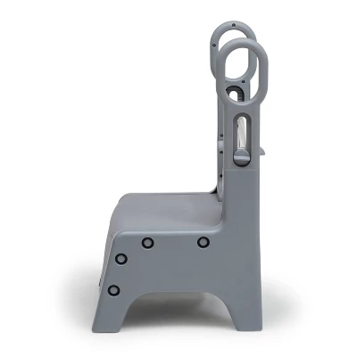 The Little Jon-EE Adjustable Potty Seat and Step Stool by Delta Children is an easy and convenient way to start toilet training with your little one. Combining a potty seat and step stool all into one convenient piece, this ladder seat allows little ones to safely step up, hold the handles and turn around to sit on the toilet–they will feel secure and confident as the begin toilet training! Easy to clean, this ladder seat features an integrated splash guard that makes it perfect for boys or girls to use, and the universal fit and adjustable height ensures it works with most standard round and elongated toilets. What else makes this potty ladder seat awesome? It easily converts to a step stool! Just fold the seat down and use the step stool at the sink, kitchen counter or anywhere else your child needs a boost, the non-slip feet and non-slip step stool surface provide security. Designed in a classic white and gray colorway, the Little Jon-EE Adjustable Potty Seat and Step Stool will coordinate with your existing décor. Get the Little Jon-EE Adjustable Potty Seat and Step Stool by Delta Children when it’s time for your little one to start their potty-training journey–it will help them conquer toilet training easily and quickly!