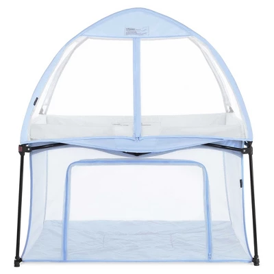 The Dream On Me Ziggy Square Playpen with Canopy sets up in a jiffy. Keep your child protected from the sun, rain and nasty bugs during outdoor play with the help of the Dream On Me Ziggy Canopy. Its thick, comfortable padded floor is gentle on those soft feet, palms, elbows and knees. The mesh walls score high on breathability and also allow you to peek in on your child as you complete your household chores. The playpen is spacious and stable enough for you to sit inside and play with your child.
