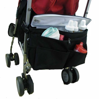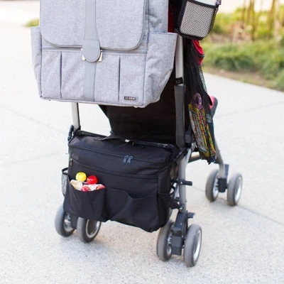 The J.L. Childress Cool ‘N Cargo Stroller Cooler is perfect for bringing food, drinks and other necessities on all of your adventures. It’s a soft cooler bag designed to attach to the back of your stroller. The Stroller Cooler features a large, insulated compartment and additional pockets for food, sippy cups, water bottles, pacifiers, toys, and more. The Stroller Cooler features 2 adjustable buckle straps and a center easy closure strap that securely attaches the cooler to a stroller basket or on the side of your stroller. The Stroller Cooler attaches low on your stroller, providing safe weight distribution to prevent tipping, and has an adjustable, detachable shoulder carry strap.