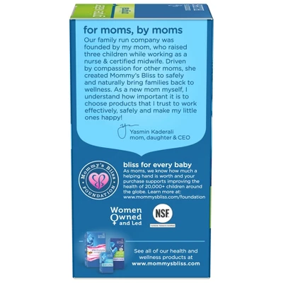 Mommy’s Bliss® Gripe Water is a safe and effective liquid herbal supplement used to ease baby’s tummy troubles and fussiness. Our #1 selling formula contains organic ginger and fennel, both of which aid in digestion, relieve gas, and calm the tummy.* Mommy’s Bliss Gripe Water is independently tested and certified by NSF to meet standards for quality, safety and label claims.