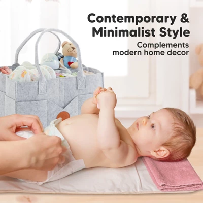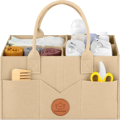 The KeaBabies Original 2.0 Diaper Caddy Bag is designed seamlessly to meet your daily needs, with everything you need daily for your baby at the tip of your fingers. Every pocket is easily accessible and stores items of various sizes. Beautifully constructed with premium felt material, it is lightweight, portable and able to withstand heavy items up to 10lbs. Arrange the interior compartments to your own preference and requirements with the modular attachment to better organise your baby essentials. Use it around the house or in the car, without constantly having to pack and unpack your baby’s daily essentials.