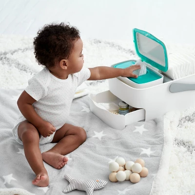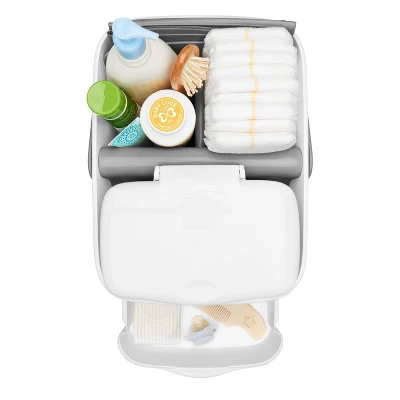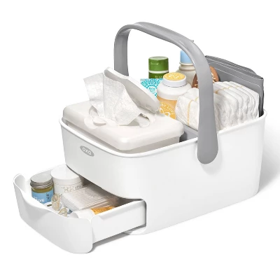 Never be caught without something you need during a diaper change. The OXO Tot Diaper Caddy with Changing Mat is a convenient way to store everything from diapers and ointments to wipes¬ and burp cloths. A generously sized, comfortable folding Mat fits right inside, so you can change baby anytime, anywhere. The wipes compartment holds a wide variety of wipes dispensers, and the drawer holds even more accessories. The locking handle makes it easy to grab and go, meaning you’ll be ready for any diaper emergency.
