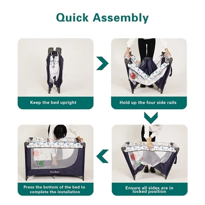 - PORTABLE CRIB: Lull your baby to sleep and give yourself some much-deserved rest as you lay them down in this portable play yard; Color: Blue