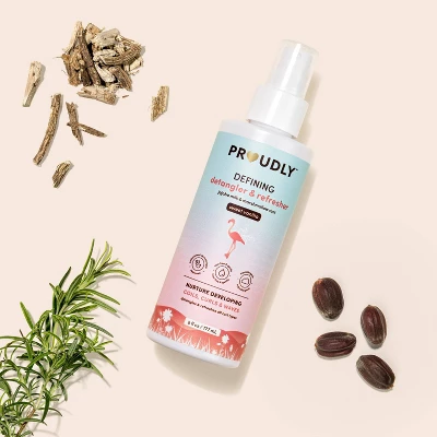 “Bye-bye tears and tangles! Hello happy, healthy, tangle-free hair! Whether used as part of a wash routine or to lock in moisture on-the-go, refresh and revive little coils, curls, and waves with just a few spritzes of PROUDLY Defining Detangler & Refresher. Designed with gentle-for-baby ingredients to nurture developing coils, curls, and waves. Thoughtfully formulated with moisture-rich goodness to easily detangle hair, refresh all curl types, nourish scalp, and provide instant softness and slip to improving manageability. Instantly softens, hydrates, and detangles all textured hair types. Lightweight, milky formula adds slip for defined curls and enhanced manageability. Locks in moisture to calm frizz, provide lasting shine, and promote a healthy scalp.