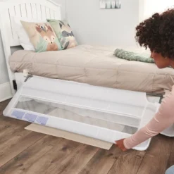 Regalo Extra Long Swing Down Bed Rail. This bedrail is perfect for those restless little sleepers. The swing down feature allows the rail to swing down out of the way when not in use and is convenient for making the bed. The all steel construction makes it very sturdy and durable. This bedrail has a 20″ sidewall that accommodates thick mattresses and is 54″ long for added security. The exclusive Gap Guard feature prevents your child from sliding between the mattress and bedrail. This bedrail fits up to a queen size mattress. The easy, no-tool set up makes this the perfect hassle free extra long bedrail. Discontinue use immediately if product breaks.